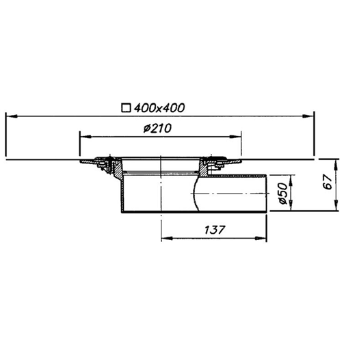 Yandan çıkışlı Ø 50, yer süzgeci alt gövde flanş + membran - Debi: 6,41 l/s